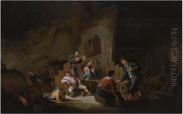 A Barn Interior With Peasants Making Music, Drinking And Dancing