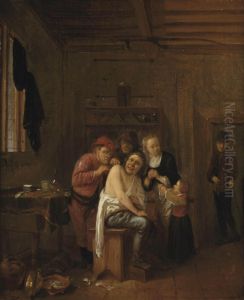Bring the timeless beauty of Anthonie Victoryns's Die Fussoperation. into your home with a handmade oil painting reproduction. Carefully recreated on canvas by skilled artists using traditional techniques, this piece captures the delicate brushwork, subtle light, and vibrant color of the original masterpiece. With museum-level quality and rich texture, it brings elegance and artistic depth to any space. Enjoy free shipping and make this masterpiece a part of your personal collection.