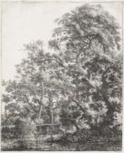 A Clump Of Trees, With Two Figures By A Sluice And A Pond