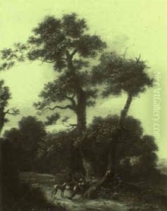 A Wooded Landscape With Bandits Fleeing