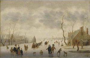 A Winter Landscape With Elegant Figures Skating And A Couple In A Horse-drawn Sleigh On The Ice