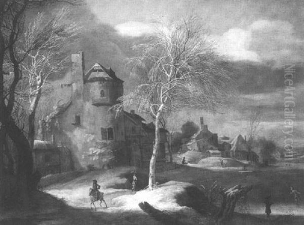 Paysage D'hiver Avec Patineurs