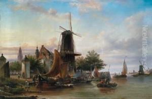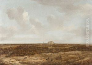 A Dune Landscape With Figures Resting Near A Track, A View Of Haarlem In The Distance