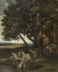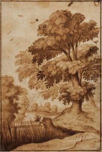 An Extensive Landscape With Peasants Conversing By A Deadtree