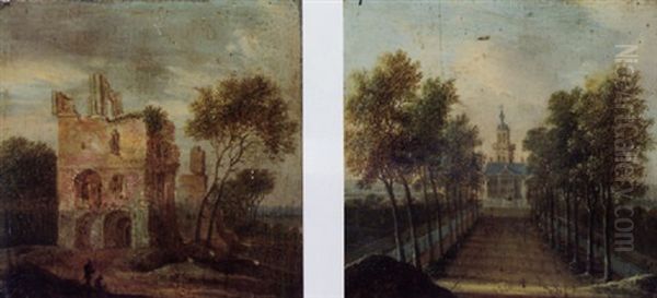 Figures Resting On A Path Before A Ruined Tower Oil Painting by Anthony Jansz van der Croos