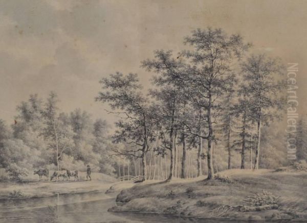 Cattle Drover In A Wooded Landscape