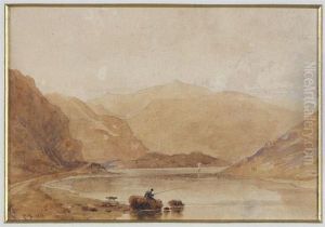 Extensive Landscape With Lake, Figure And Cattle