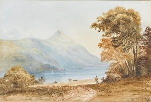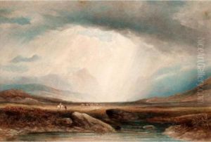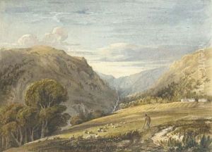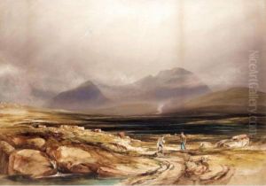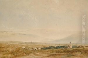 A Shepherd And His Flock On A Country Track, An Extensive View Beyond