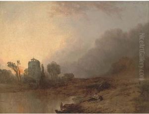 A View Of Penrhyn Castle, Wales, With Figures In Theforeground