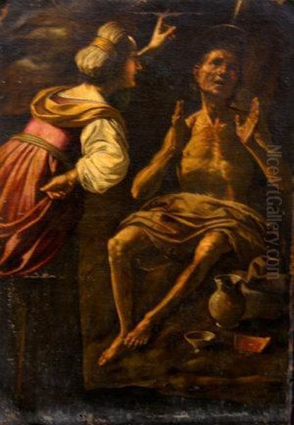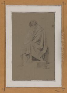 A Seated Partly Draped Man With Halo
