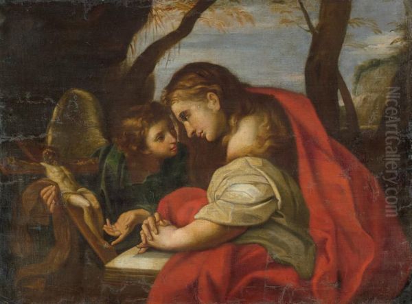 Maria Magdalena Mit Dem Engel In Einer Landschaft
