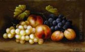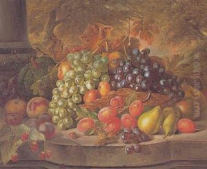Stilleben Mit Fruchten In Einem Korb Auf Einer Steinplatte