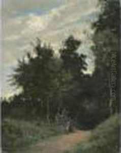 A Summer Landscape With Figures By The Wayside