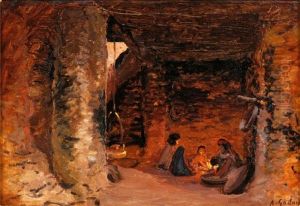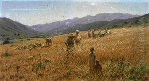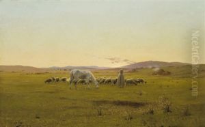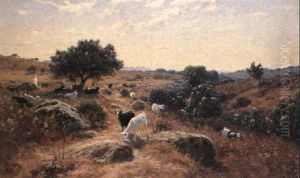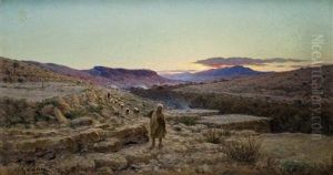 Jeune Berger Et Ses Chevres Au Crepuscule