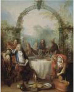 Mademoiselle Salle Surrounded By Musicians In A Park Landscape