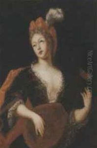 A Lady Playing A Lute