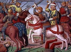 King Arthur with his army besieging and taking over a castle, from Lancelot du Lac, c.1490