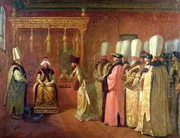 Bring the timeless beauty of Antoine de Favray's Audience of Charles Gravier 1717-87 Comte de Vergennes with the Sultan Osman III 1699-1757 in Constantinople into your home with a handmade oil painting reproduction. Carefully recreated on canvas by skilled artists using traditional techniques, this piece captures the delicate brushwork, subtle light, and vibrant color of the original masterpiece. With museum-level quality and rich texture, it brings elegance and artistic depth to any space. Enjoy free shipping and make this masterpiece a part of your personal collection.
