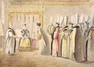 Audience of Charles Gravier 1717-87 Comte de Vergennes with the Sultan Osman III 1699-1757 in Constantinople