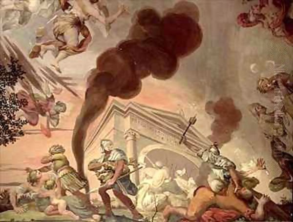 The Triumph of Peace Over War, detail of soldiers looting a temple, from the ceiling of the main hall