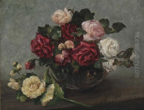Stillleben Mit Rosen Und Malven