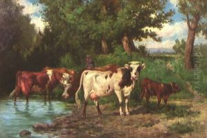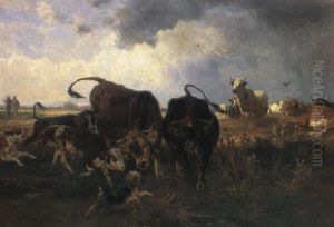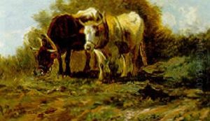 Hirtenjunge Und Vieh - Kuh, Stier Und Kalb Auf Der Weide