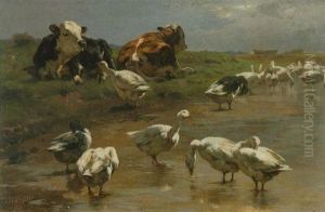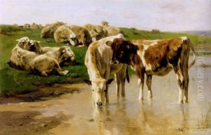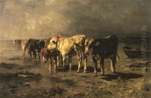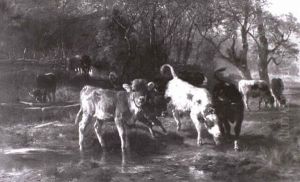 Ein Heisser Tag (eine Kuhherde Steht Dicht Zusammengedrangt Am Wasser Und Erfrischt Sich)