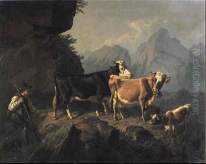 Huterbub Mit Kuhen Und Kalb Im Hochgebirge