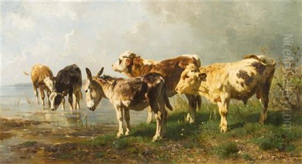 Bring the timeless beauty of Anton Braith's Cows And Donkey Watering In A Landscape into your home with a handmade oil painting reproduction. Carefully recreated on canvas by skilled artists using traditional techniques, this piece captures the delicate brushwork, subtle light, and vibrant color of the original masterpiece. With museum-level quality and rich texture, it brings elegance and artistic depth to any space. Enjoy free shipping and make this masterpiece a part of your personal collection.