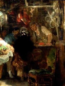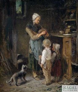 Kucheninterieur Mit Mutter, Kindern Und Katze