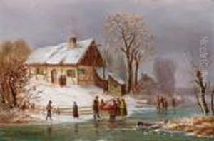 Winterfreuden. Signiert Unten Rechts: Anton Doll Munchen. Ol Auf Leinwand. H 58; B 87