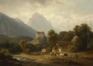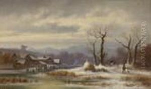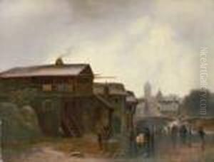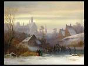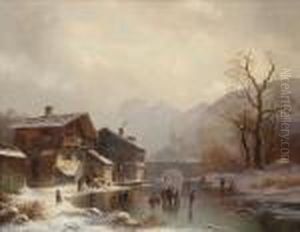 Verschneites Dorf Mit Figurenstaffage. Unten Links Signiert A. Doll, Munchen