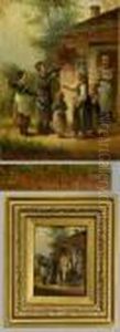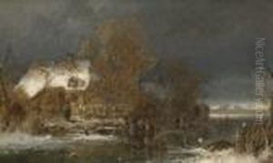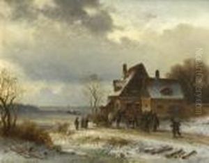 Winterlandschaft Mitfiguren Vor Einem Alten Haus