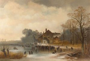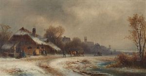 Winter Scene With Figures At Inn On Canal