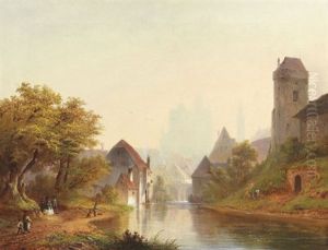 Flusslandschaft Mit Dorf Und Burg