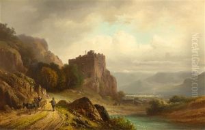 Tiroler Gebirgslandschaft Mit Festung Und Gehoften, Zahlreicher Personenstaffage Und Kleinem Gefahrt