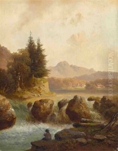 Angler Am Gebirgsbach