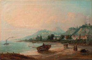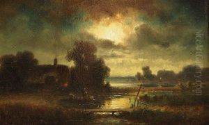 Figures On A Frozen River Close To A Village