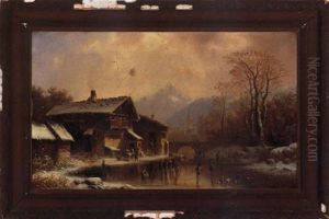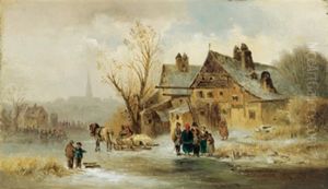 Villagers In Snowcovered Landscape (+ Another; Pair)