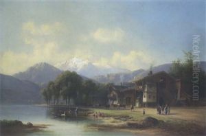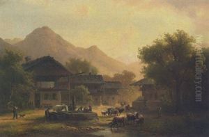 Gebirgslandschaft Mit Bauerlicher Staffage