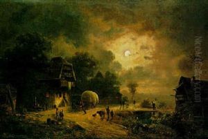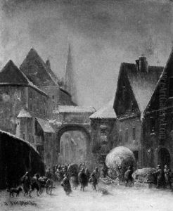 Winterlandschaft Mit Hausern Und Figurengruppe
