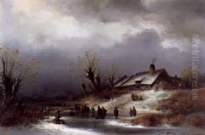 Winterlandschaft Mit Bauern Vor Einer Hutte