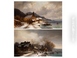 Winter Landscape With Skaters And Village