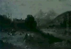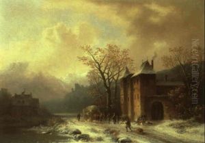 Figures In A Snowy River Landscape