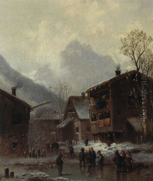 Gebirgsdorf Im Winter Oil Painting by Anton Doll