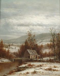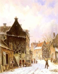 Winterlandschaft Mit Hausern Und Figurengruppe