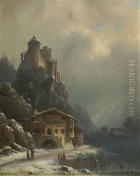 Winterliche Landschaft Mit Einer Burg