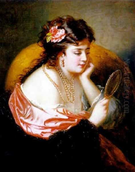 Bring the timeless beauty of Anton Ebert's Dunkle Schone Mit Schulterfreiem Kleid Betrachtet Sich Im Spiegel into your home with a handmade oil painting reproduction. Carefully recreated on canvas by skilled artists using traditional techniques, this piece captures the delicate brushwork, subtle light, and vibrant color of the original masterpiece. With museum-level quality and rich texture, it brings elegance and artistic depth to any space. Enjoy free shipping and make this masterpiece a part of your personal collection.