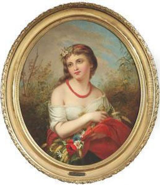 "l'ete". A Girl Decorated With Flowers In Front Of A Blooming Field