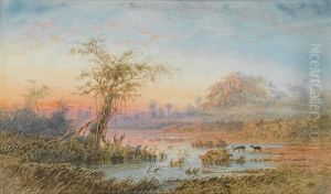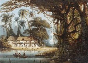 A Venezuelan River Landscape With Scarlet Ibis Sheltering From A Gale In A Backwater